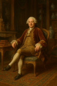 Twice monthly, a courier galloped at breakneck speed between the capital and Juvigny, delivering the Marquise’s ensembles and beauty requisites. Profoundly enamoured, the Marquis Robert willingly catered to every opulent whim with gentlemanly grace. Nearly always decked out in a coat of either blue or mauve cloth, sporting a mandarin-yellow waistcoat trimmed with pink, trousers of either black or light grey cashmere, and small, elegant shoes, he only ever parted from her to inspect his lands, on which occasions he would pull on his boots, don leather breeches and a Hamburg riding coat, mount one of the frisky steeds from his stable, and set forth with either a pair of greyhounds or his gun dogs, shotgun at the ready. Dispensing with the outdated custom of powdered hair, he now carefully tended to his short side whiskers, in keeping with the fashionable taste of the period.